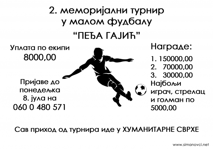 СпортТурнир Пеђа Гајић Турнир „Пеђа Гајић“ – 12.-21. јул 06/06/2019 191 ПоделиFacebookXViberWhatsAppTelegramEmailPinterest