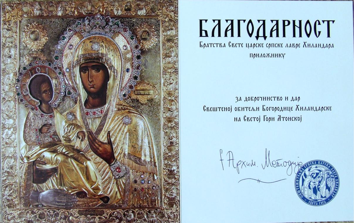 Манастири и цркве у то време су биле прве цивилне институције наше државе; Један пример, наш манастир Хиландар поседује скоро трећину земљишта Свете Горе. И 70% извора пијаће воде. Манастир Хиландар је корен српства, корен наше културе, цркве и државе; Свети Сава је поставио правило да се патријарх Србије бира од монаха из Хиландара; Мирослављево јеванђеље, најзначајнија српска ћирилична рукописна књига и споменик је састављана и стављена у Хиландар да би се на њом/њим проглашавали краљеви и патријарси српски;… итд.